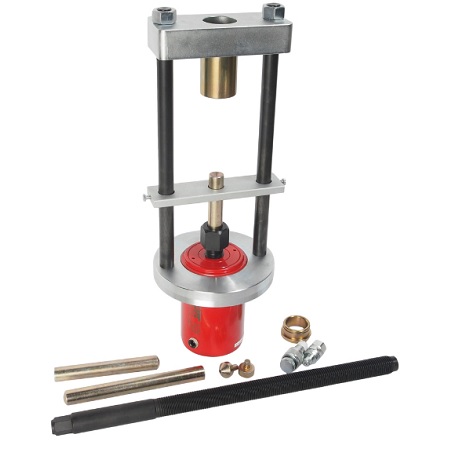 Усилие 10 тонн. Настольный. Ручной. Для запрессовки подшипников, деталей машин, втулок и т.п. в автосервисе, мастерских по ремонту лодочных моторов, велосипедов и т.п. Гидроцилиндр с пуансоном имеет возможность перемещения по всей ширине рамы. Контроль усилия – визуально по шкале манометра. Интервал пуансона 135 мм. Рабочее окно: 400 x 350 мм.