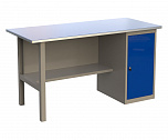 PROFFI-116 Т1 Верстак металлический (однотумбовый) Cтолешница 1600 мм (фанера 24 мм + оцинкованный металл 1 мм), опора, тумба с ящиком и дверью, полка-стенка. Вес - 69/80/92 кг. Объем - 0,4/0,43/0,46 куб. м. Кол-во мест 4/5. (ВхШхГ)870х1600х700