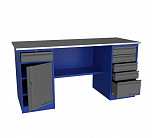 Двухтумбовый. Допустимая нагрузка на столешницу 1000 кг. Опорные элементы выполнены сварными из холоднокатаной стали. Для выполнения сборочных, ремонтных, слесарных, монтажных и других видов работ на производстве, в сервисных центрах, мастерских, гаражах, а также для обучения технологии в учебных заведениях. Комплектуется полкой-стенкой, расположенной под столешницей для удобного размещения габаритного инструмента и оснастки. Размеры верстака: 855x1796x696 мм. Вес: 121 кг. Поставляется в 4 комплектациях на выбор.