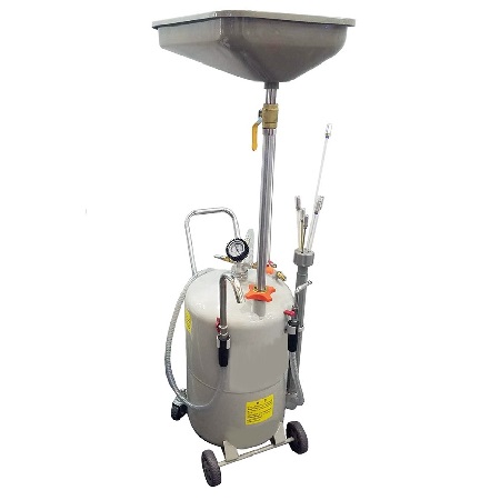 Установка для слива и откачки щупами масла и антифриза из ДВС, КПП и мостов всех авто. В комплекте: Колба + сливная чаша с сеткой для улавливания мелких деталей + щупы гибкие 5 шт. + лоток для сливной пробки + стрелочная индикация уровня разрежения + визуальный контроль уровня отработки + пистолеты для откачки масла + быстросъёмный штуцер для пневмолинии. Вмещает 100 л. = Бак 80л + колба 10 л. + сливная воронка 10л.