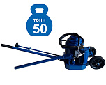 Подхват под раму и мосты грузовых автомобилей и спецтехники. Увеличенный диаметр металлических колес домкрата, позволяет легко транспортировать его по не ровным поверхностям. Можно поднимать автомобили для ремонта ВМЕСТЕ С ГРУЗОМ. г/п 50т. Пневмогидравлический. Высота подъема 280-470мм. Ход поршня 190 мм.