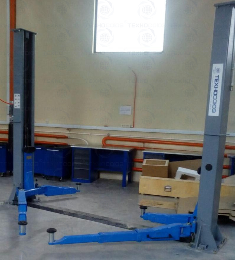 Колонны подъемника оснащены стопорным механизмом, предотвращающим падение автомобиля.