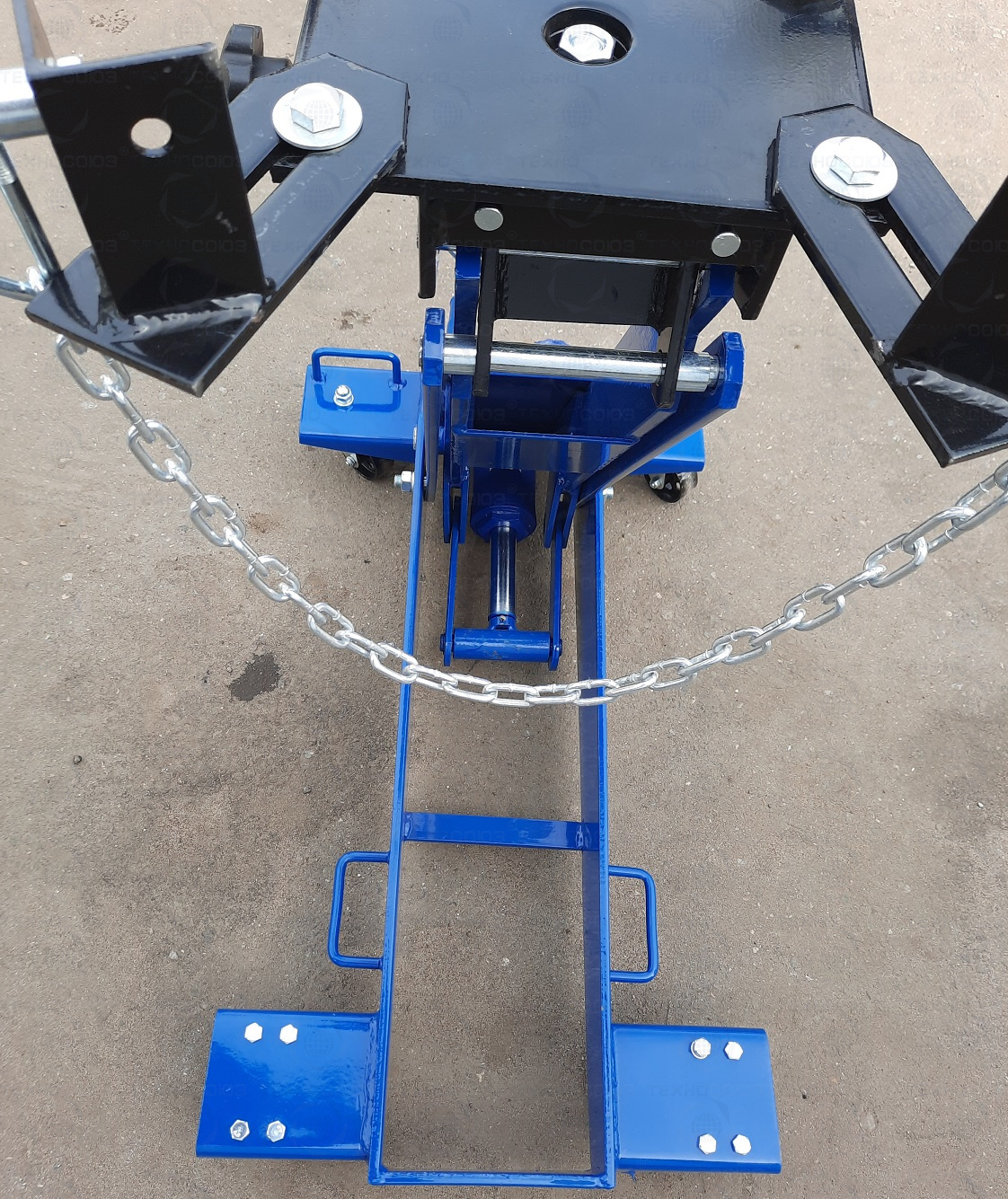 Трансмиссионная гидравлическая стойка домкрат - является мобильным подъёмным устройством. С ее помощью можно поднять и переместить снятый узел. При подъеме на требуемую высоту удобно монтировать снятый агрегат. Цвет темно-синий.