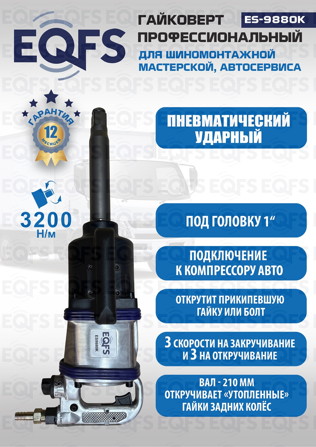 Технические особенности ES9880K Грузовой гайковерт + набор головок: