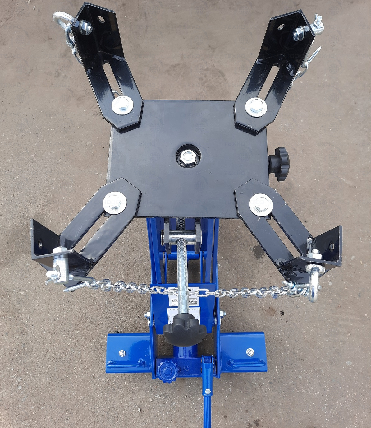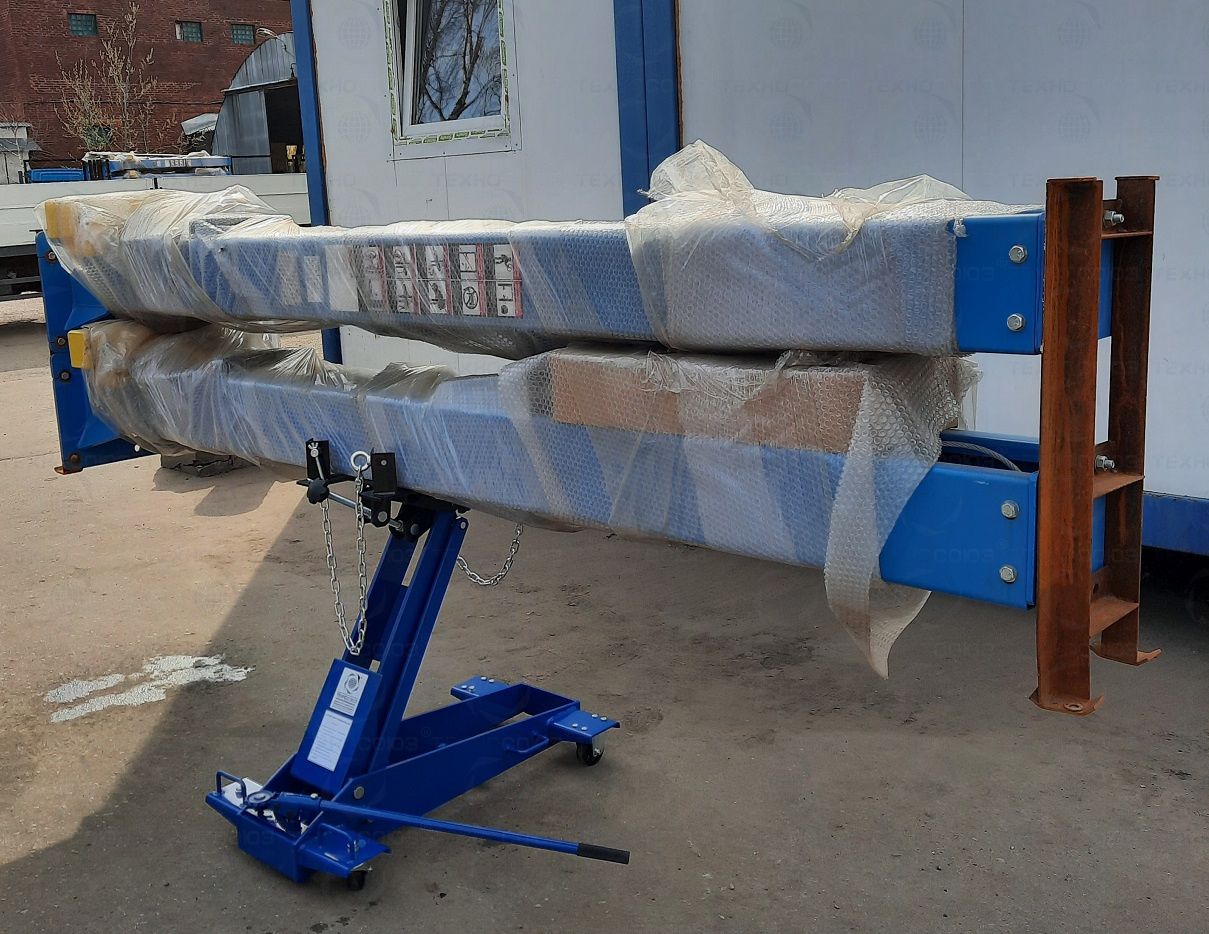 Трансмиссионная гидравлическая стойка (домкрат трансмиссионный) является мобильным подъёмным устройством. С ее помощью можно поднять и переместить снятый узел. При подъеме на требуемую высоту удобно монтировать снятый агрегат. Цвет темно-синий.